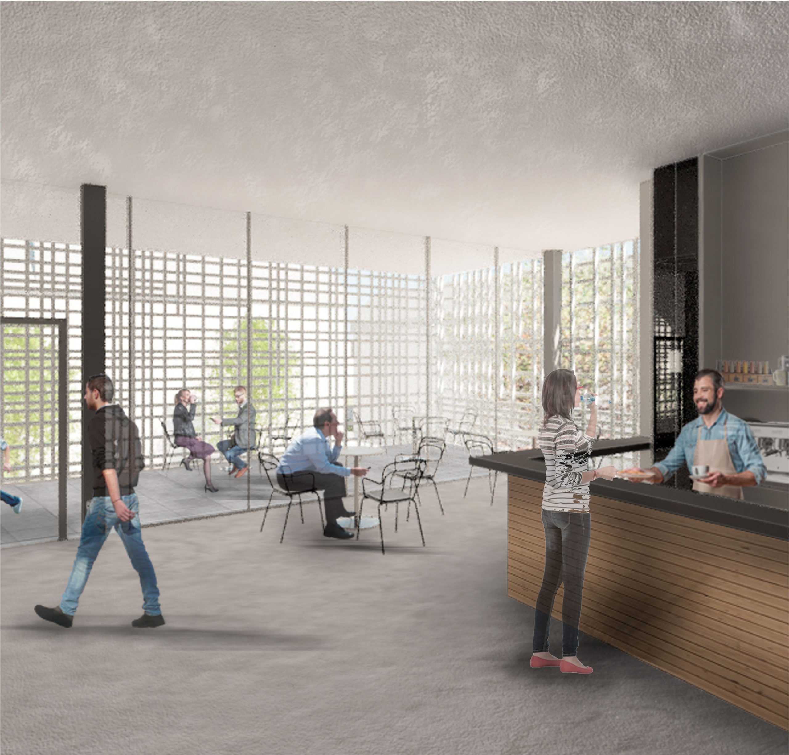 Autobusová zastávka zůstává na stejném místě, má zde výhodnější polohu. Nejvýraznějším prvek budovy je její plášť, který svým vzhledem připomíná tkaninu, odkazuje tak na textilní průmysl, díky kterému se Stráž rozvíjela. Právě na místě, kde je nová stavba umístěna, byla dříve textilní továrna. Plášť má v určitých místech řidší či hustší vzor, podle potřeby osvětlení interiéru.